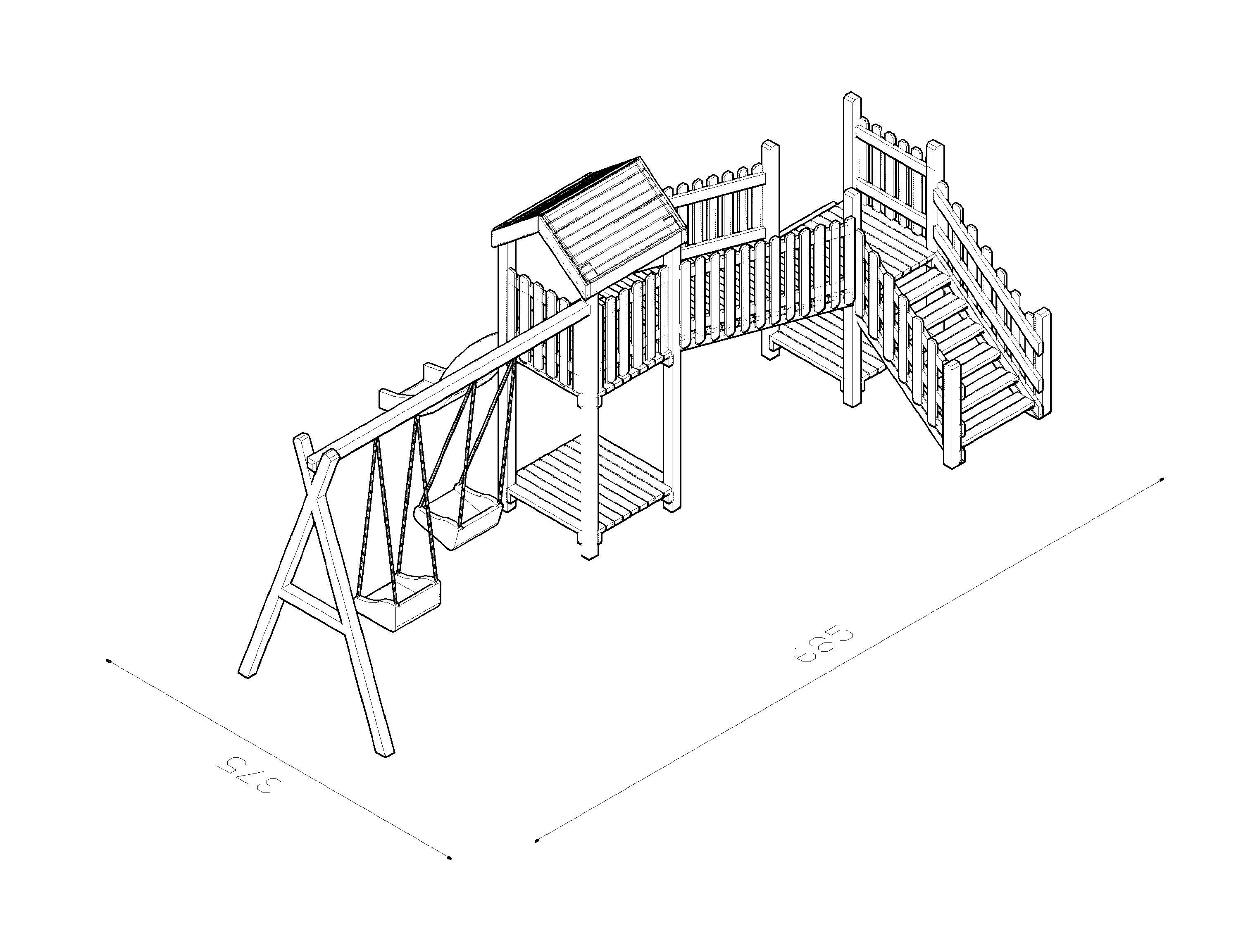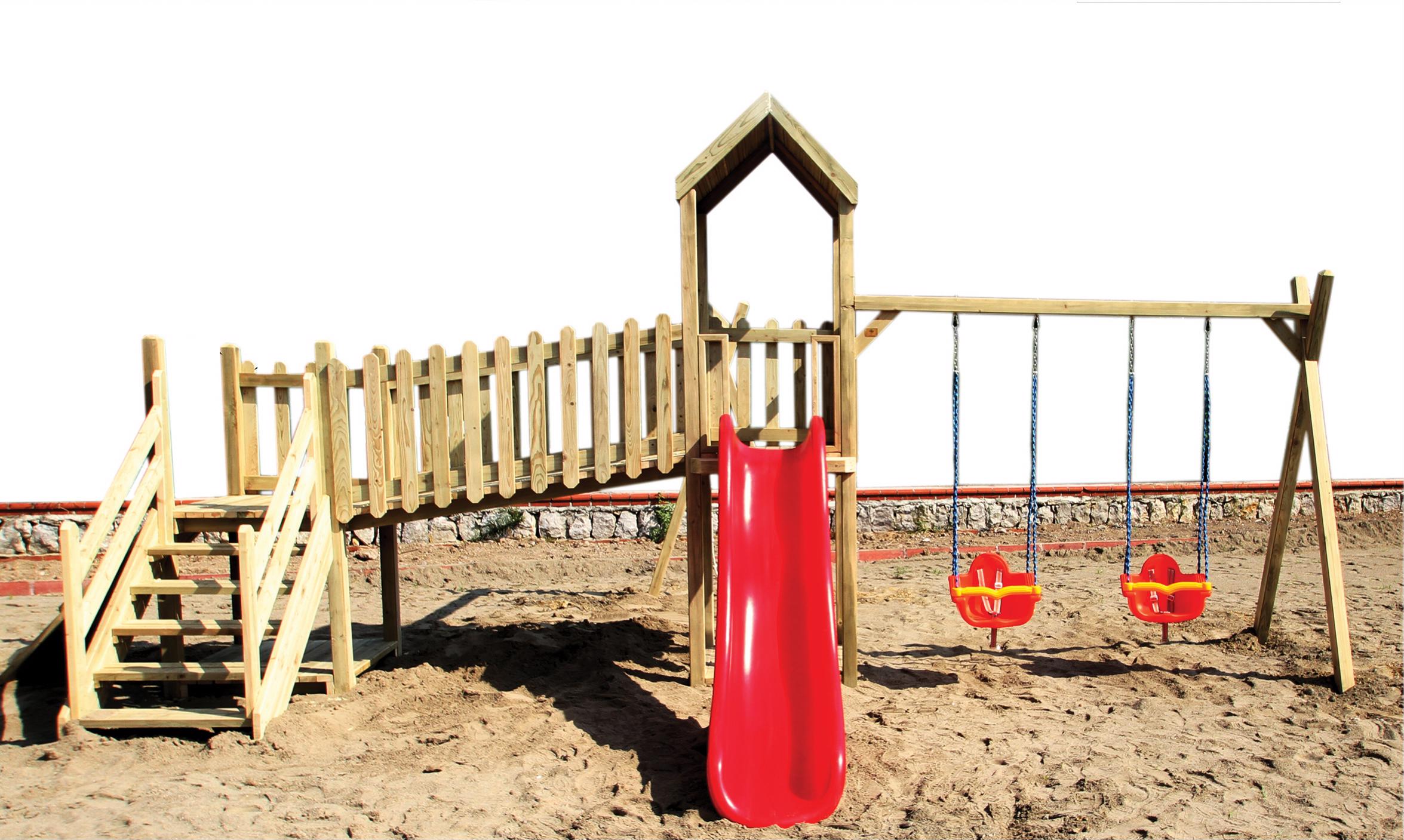 SZN Oyun Parkı İki Kuleli Çocuk Parkı OG02 685 Cm x 375 Cm x 305 Cm Emprenyeli