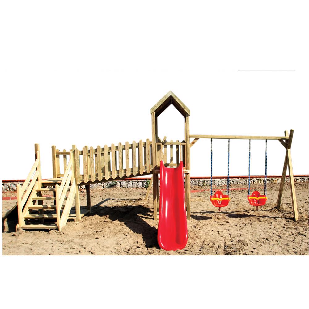 SZN Oyun Parkı İki Kuleli Çocuk Parkı OG02 685 Cm x 375 Cm x 305 Cm Emprenyeli