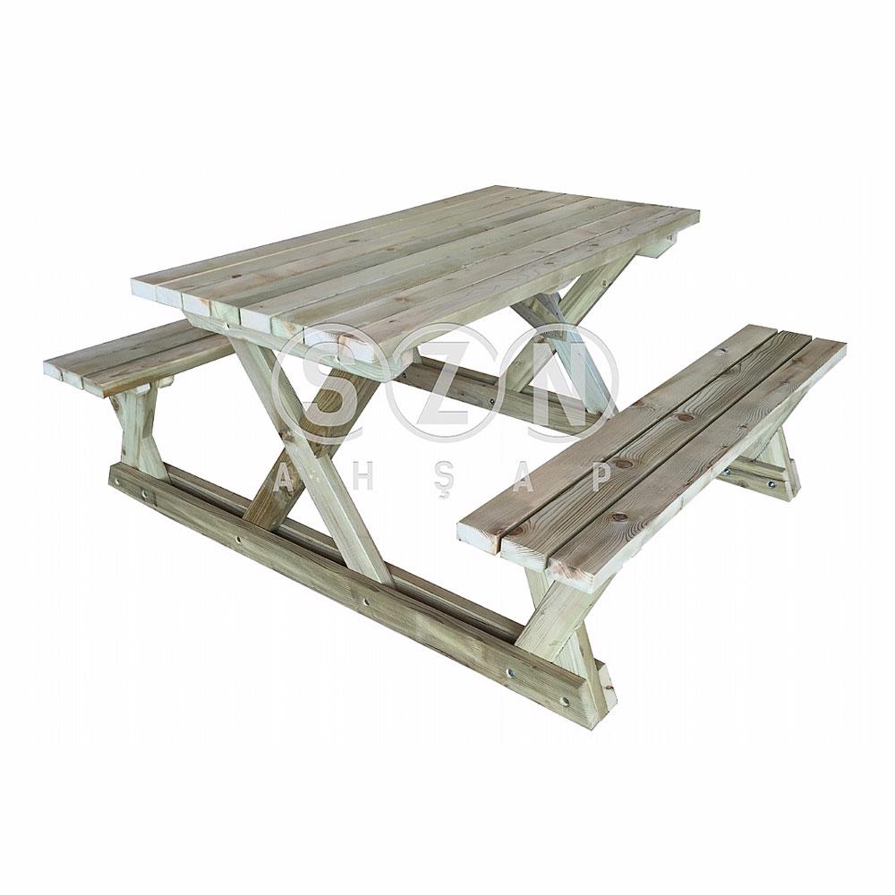 SZN Masa Takımı Oturaklı Sabit PM06 148 Cm x 220 Cm x 75 Cm Emprenyeli