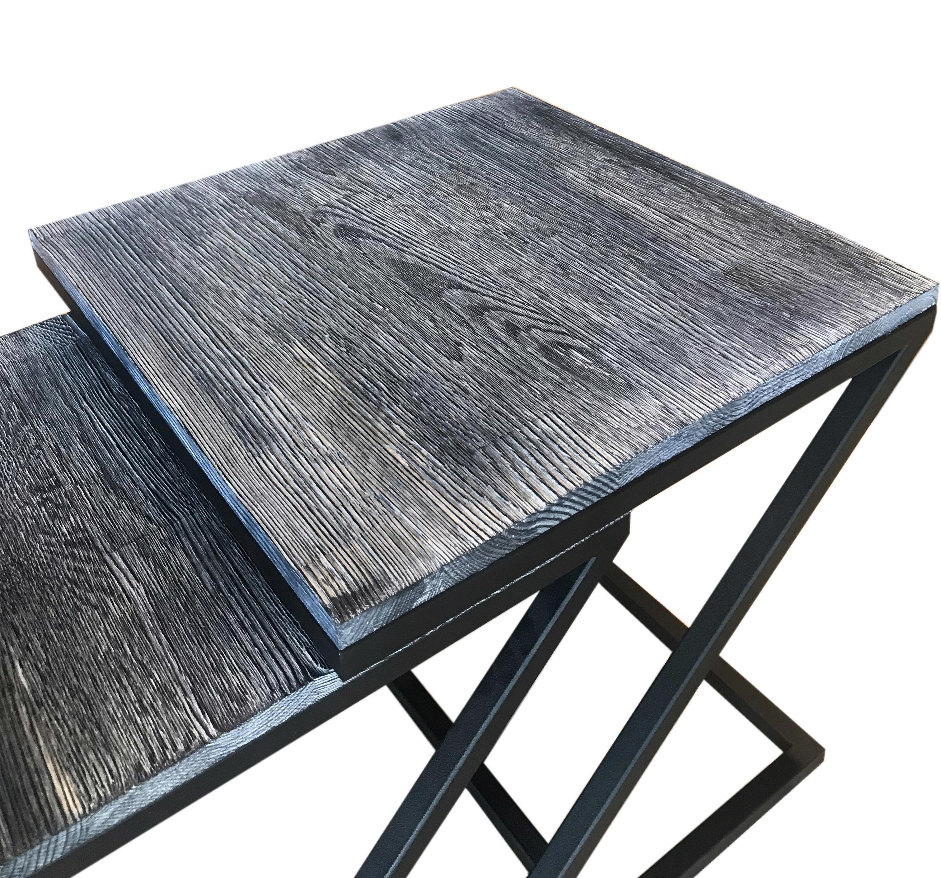 SZN Wood Zigon Sehpa Tao Siyah Ahşap Çam Panel Özel Renk - İkili 45 x 45 x 50 cm