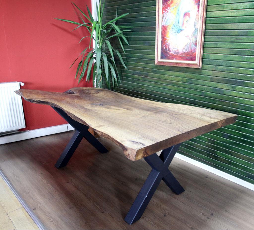 SZN Wood Kütük Masa Ceviz Tek Parça 2 Kenar Sulama -- W01-Dark Oak -- -- 210 x 90 x 6,5 cm
