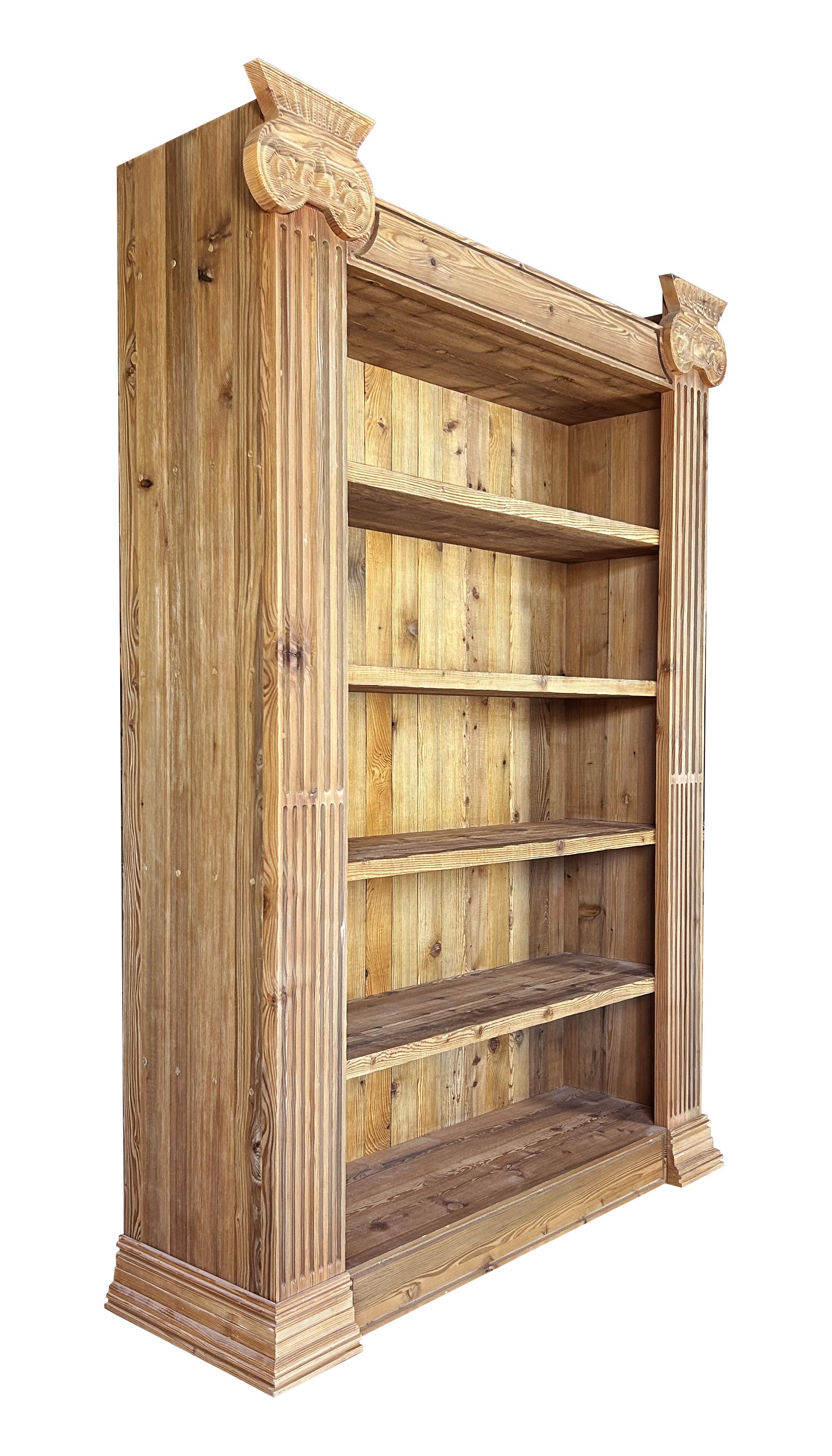 SZN Wood Kitaplık Kingo Ladin Eskitme Ağartma 130 x 45 x 200 cm Oymalı